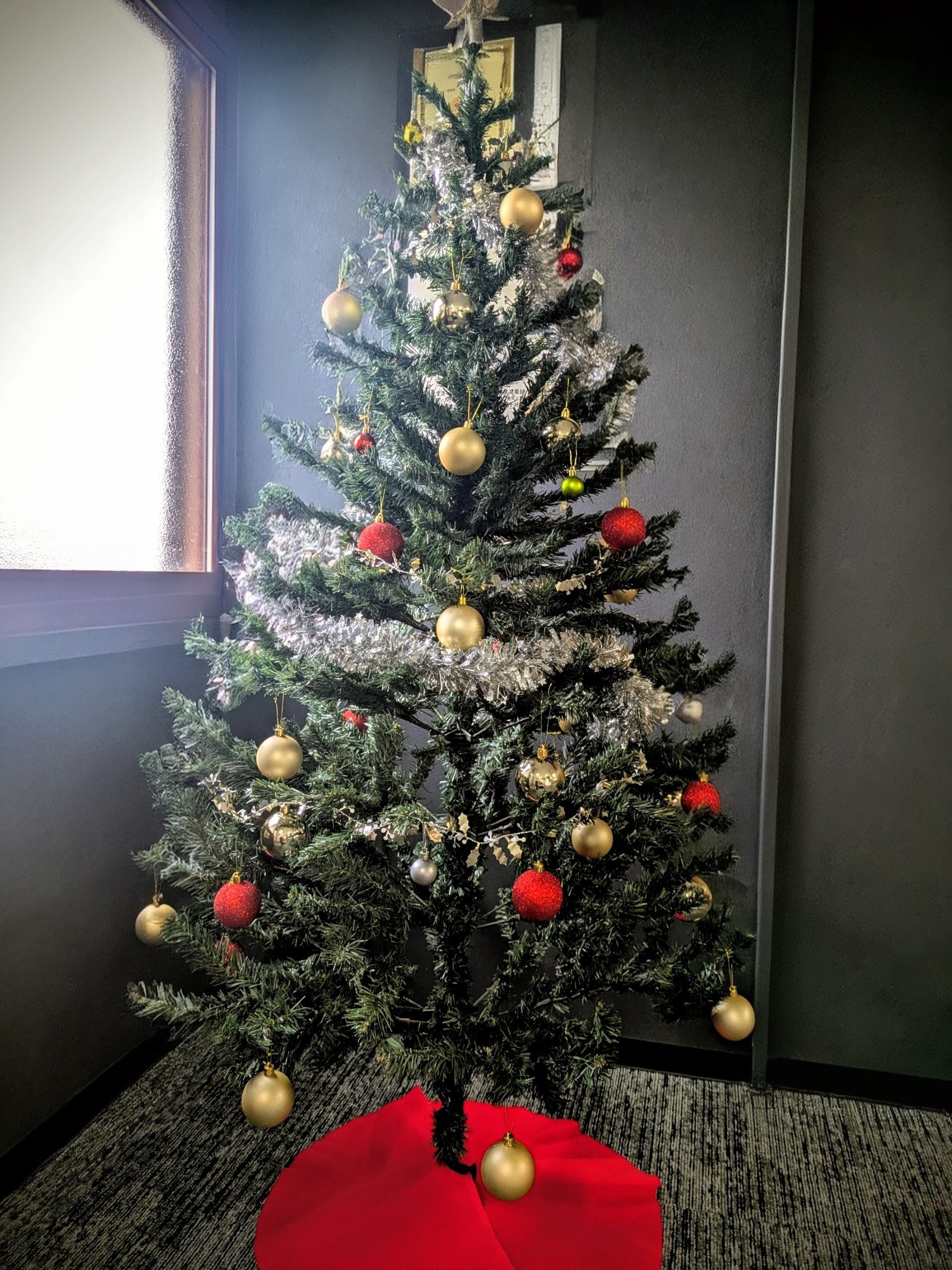 会社の入口にもキラキラと飾られたツリーがお目見えしました。皆様のところにもほっこりした気持ちが届きますように♪